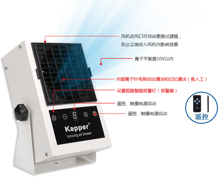 Kapper卡帕爾品牌打造科技創新,爭創行業品牌,已成功由產品機械化轉向產品智能化,將引領靜電設備行業進入智能化、科技化,也將掀起防靜電設備行業科技創新風潮,成為具 有高度競爭力和領先性優勢的開創型企業。產品應用涵蓋電子、化工、印刷、LED、LCD顯示器、半導體生產線、包裝等諸多行業,產品覆蓋全國各地,并遠銷海外。